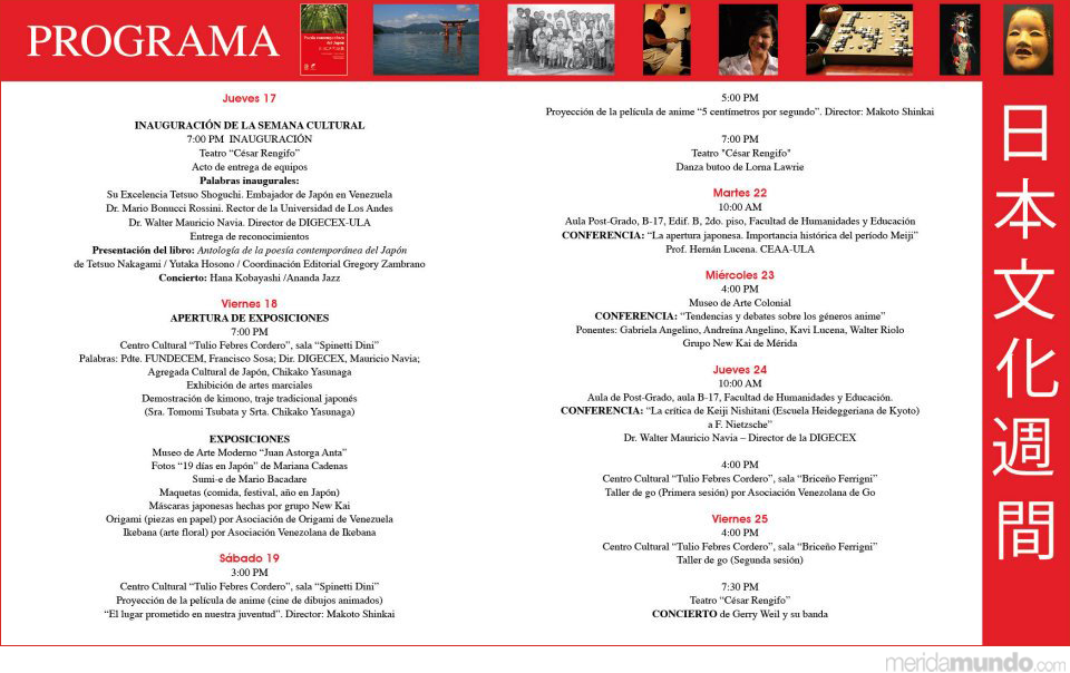 Invitan: la Embajada del Japón, Universidad de los Andes y el Gobierno Bolivariano del Estado Mérida.